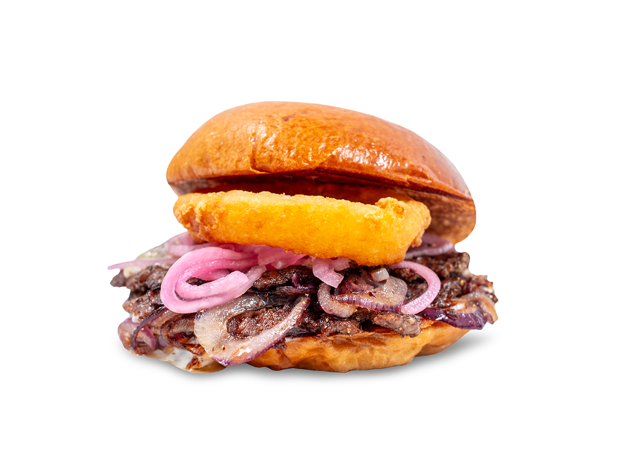 Bröd / kött / extra lagrad cheddarost / lökring / picklad rödlök / tryffelmajjo / stekt lök