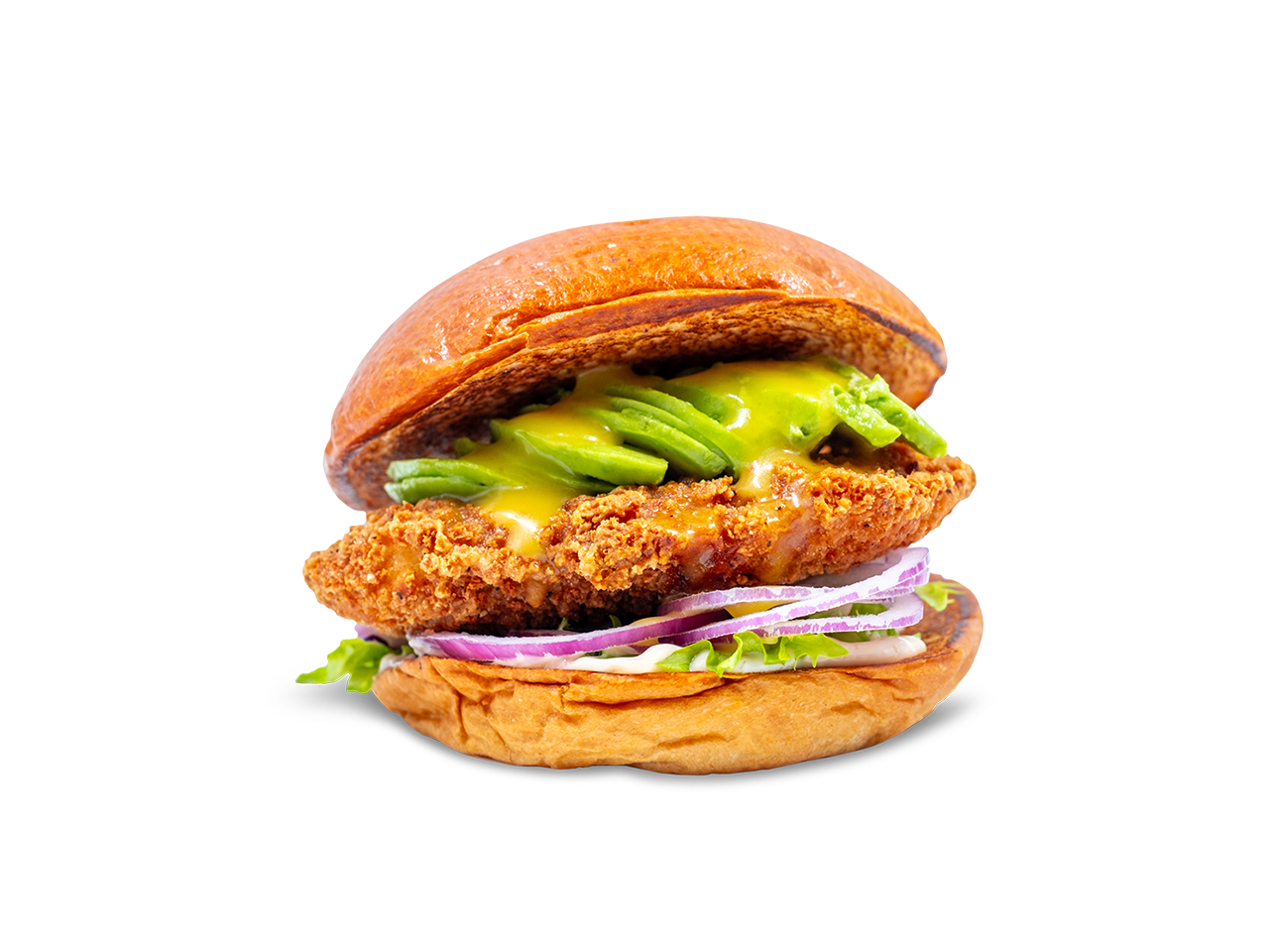 Bröd / crispy chicken / sweet onionmajjo / avokado / rödlök / citronette / sallad