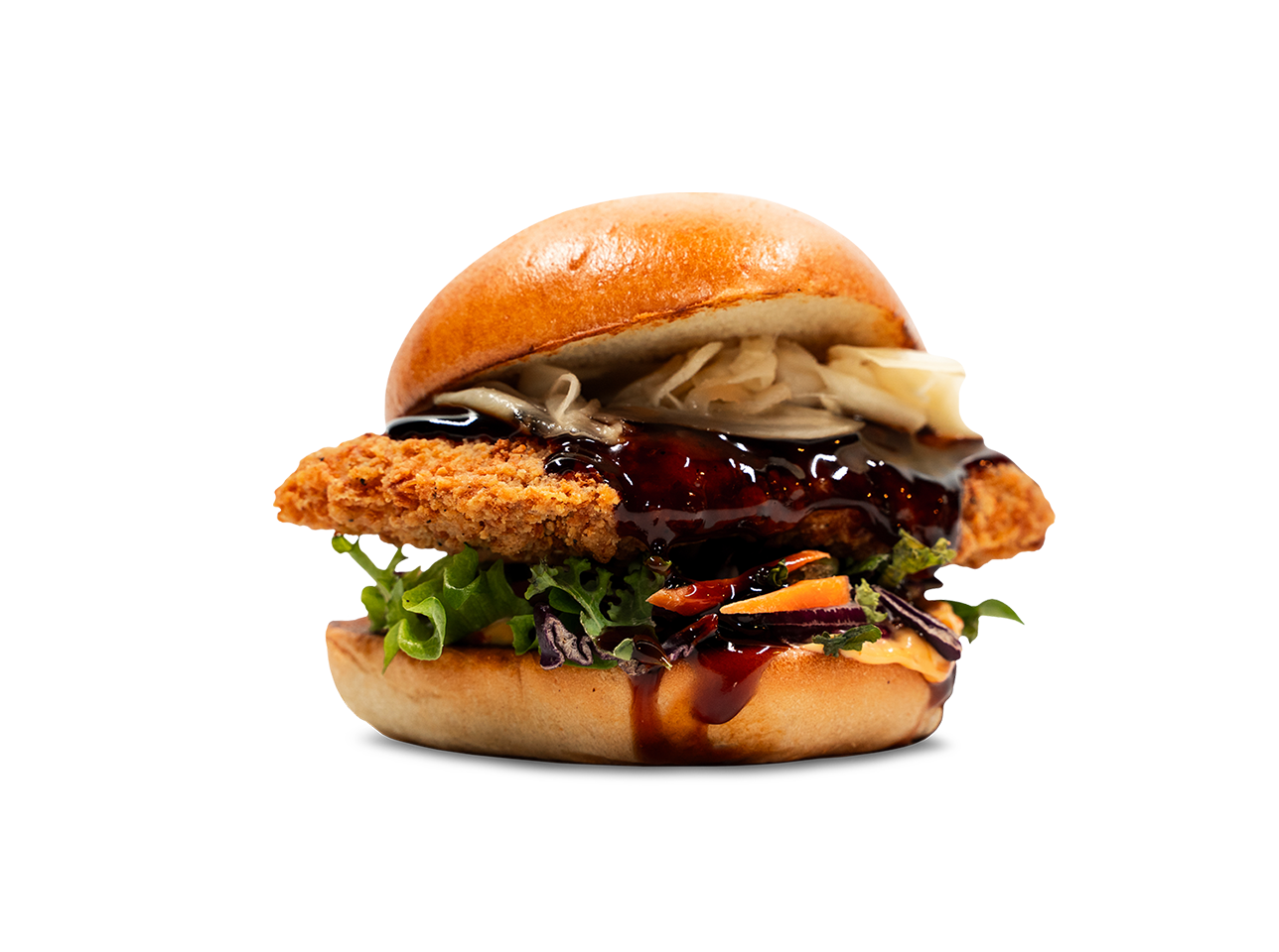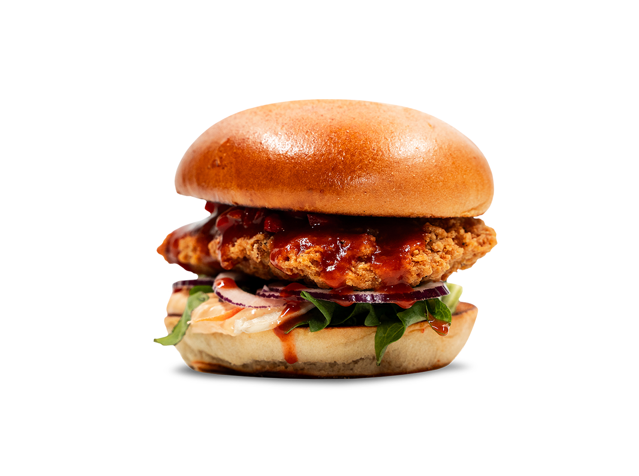 Bröd / crispy chicken / sesamdressing / Korean BBQ-sås / gari / sallad / rödlök